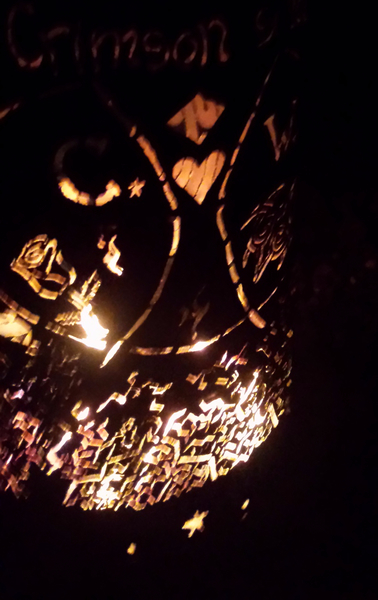 This piece was commissioned by a man for his wife, both of whom are founders of the Burning Man event. It is commemorating their involvement in the event, their many years together, fire, stars, the playa, and an incredible labrynth.