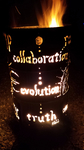 This long time Burning Man camp wanted a barrel that was simple: camp logo, camp values, and camp dome. Viola! It's radical.
